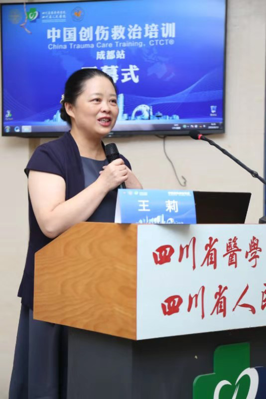 急救中心孙明伟主任介绍了我院急救中心的发展,和学员们分享了长宁地震伤员5G救援和高原肺水肿患者ECMO转运的成功案例,迎来一阵阵掌声。最后孙主任表示,四川创伤救治仍在前进的道路上,四川省人民医院急救中心将努力进取,起到模范带头作用,也希望学员把所学知识运用到临床工作中,共同促进中国创伤救治的进步。