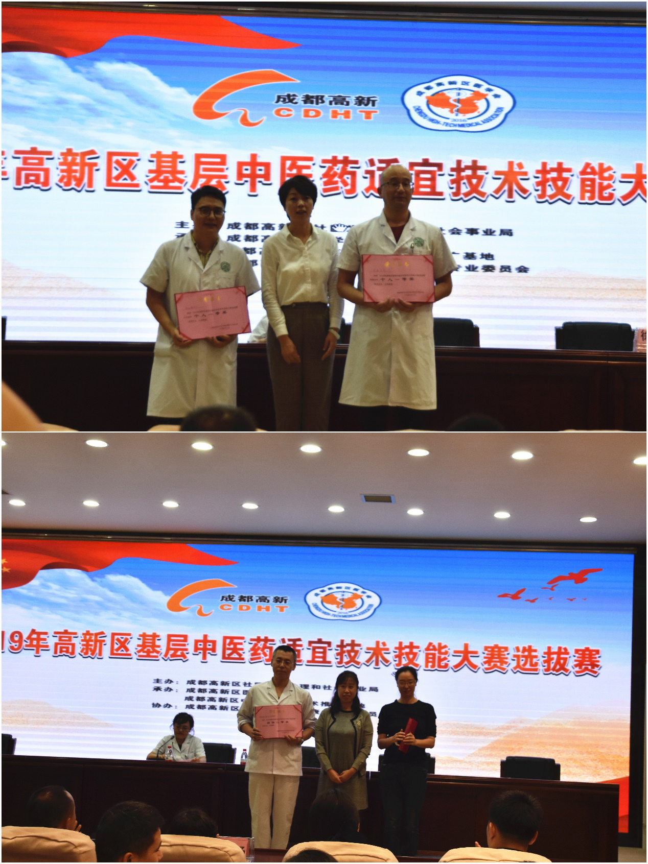 颁奖仪式上专家评委对本次选拔赛进行了全方位的点评,最后卫生事业发展中心付洁主任、社会事业局和炎以及专家评委分别为获奖单位及个人颁发获奖证书。同时通过本次选拔,根据专家对选手综合水平考核,将拟定4位选手组成赛队,代表高新区参加2019年成都市基层中医药适宜技术技能大赛,力争在市级比赛中取得优异的成绩。