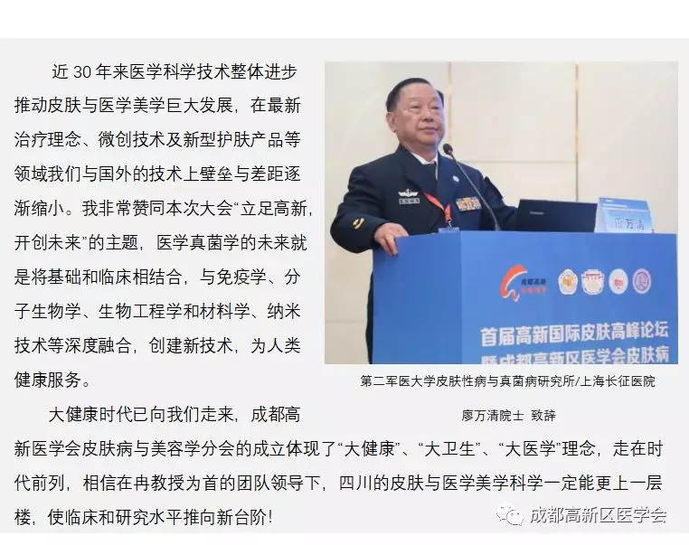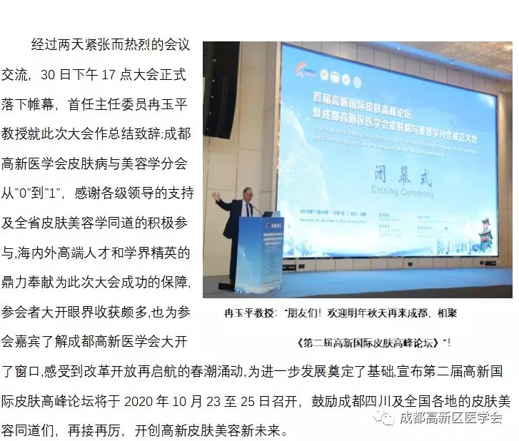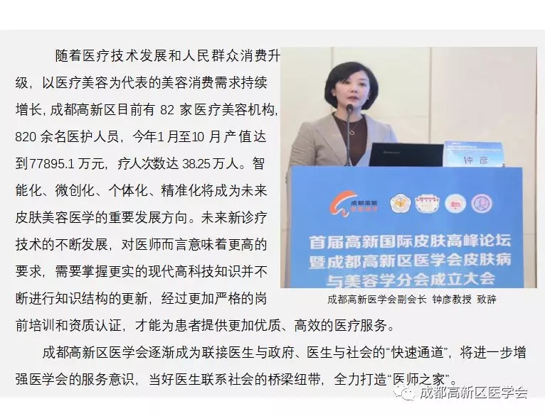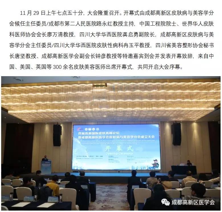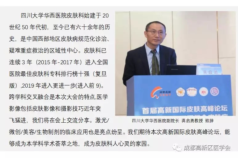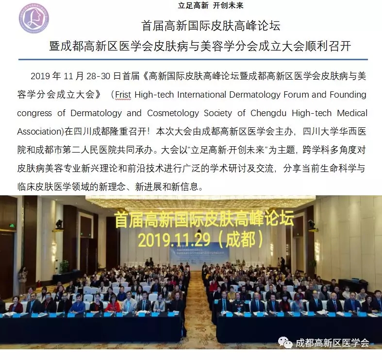 立足高新 开创未来·首届高新国际皮肤高峰论坛暨成都高新区医学会皮肤病与美容学分会